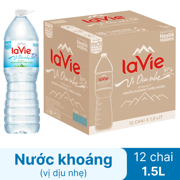 Thùng nước LaVie 1.5L Vị Dịu Nhẹ ( 12 chai)